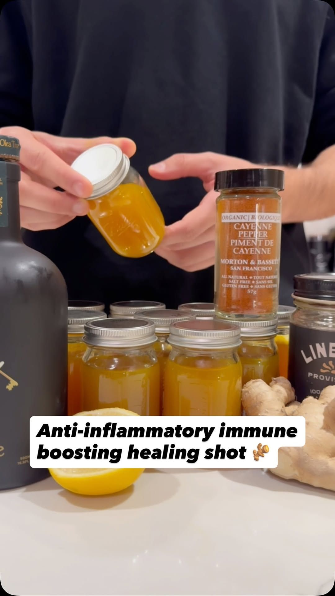 6Before you drink, add the heat sensitive stuff- we want to maximize their benefits so we add these in cold. Freshly squeezed lemon, EVOO, raw honey. Shake, and enjoy your anti-inflammatory immune boosting healing shot.